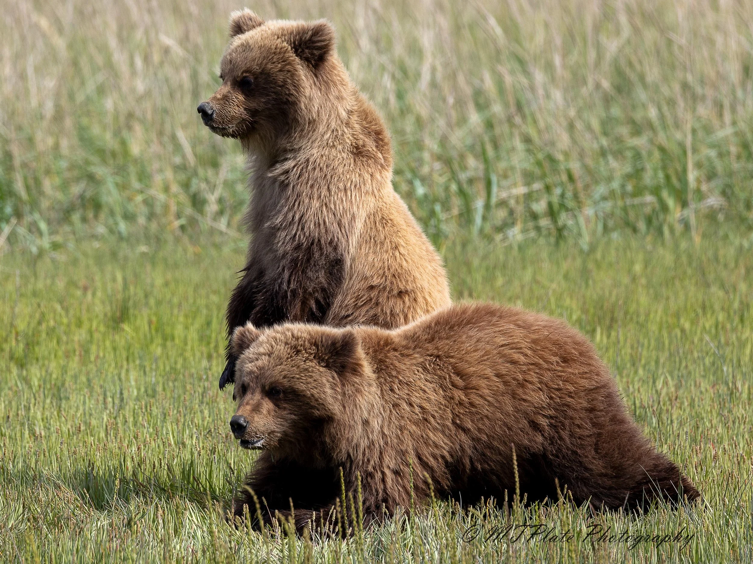 Alaskan grizzly bear cubs playing after a meal . Tyonek, AK. We have a passion for all mother nature has to bring us. From land to sea we the see the beauty in all creatures and want to share our view with the world.