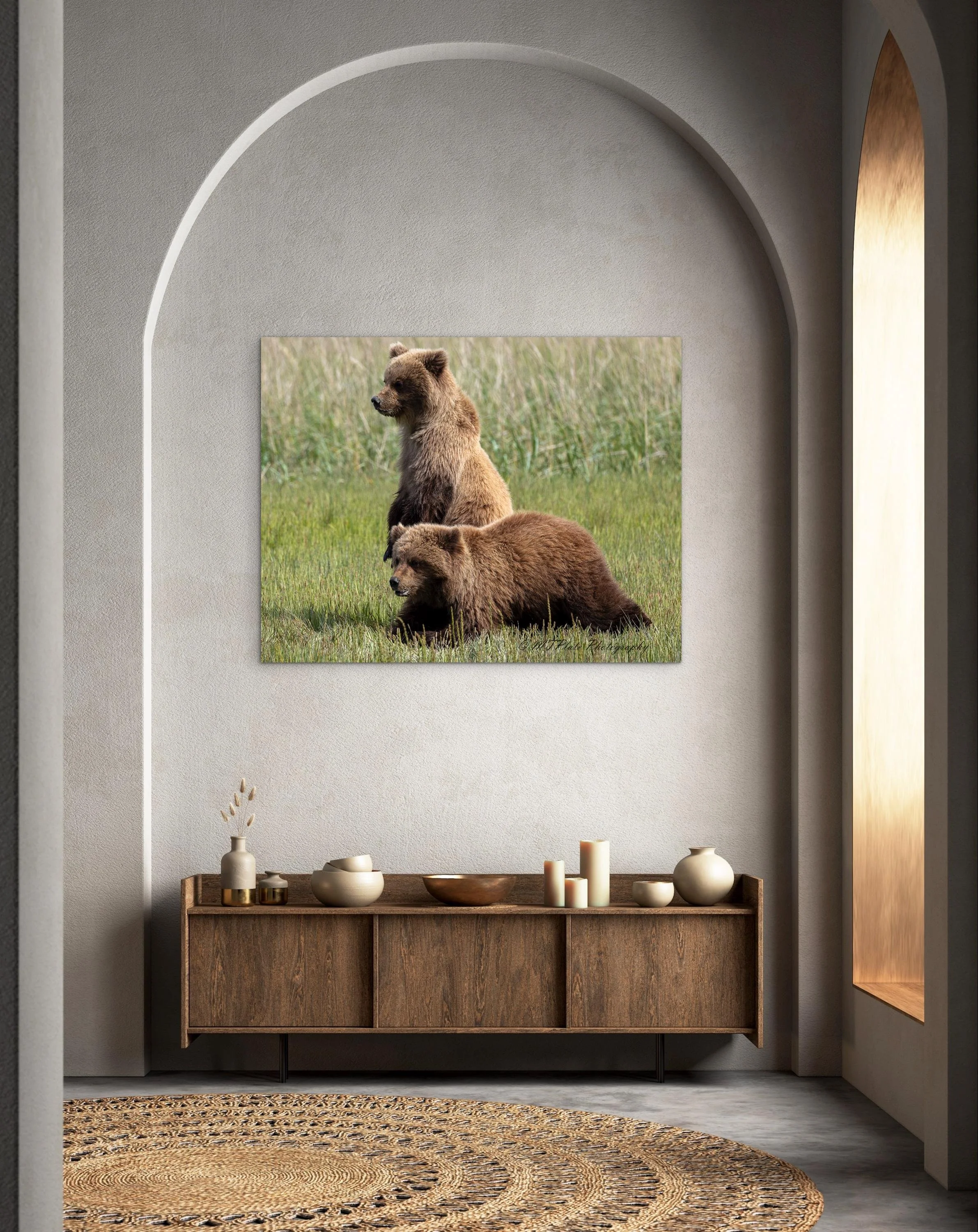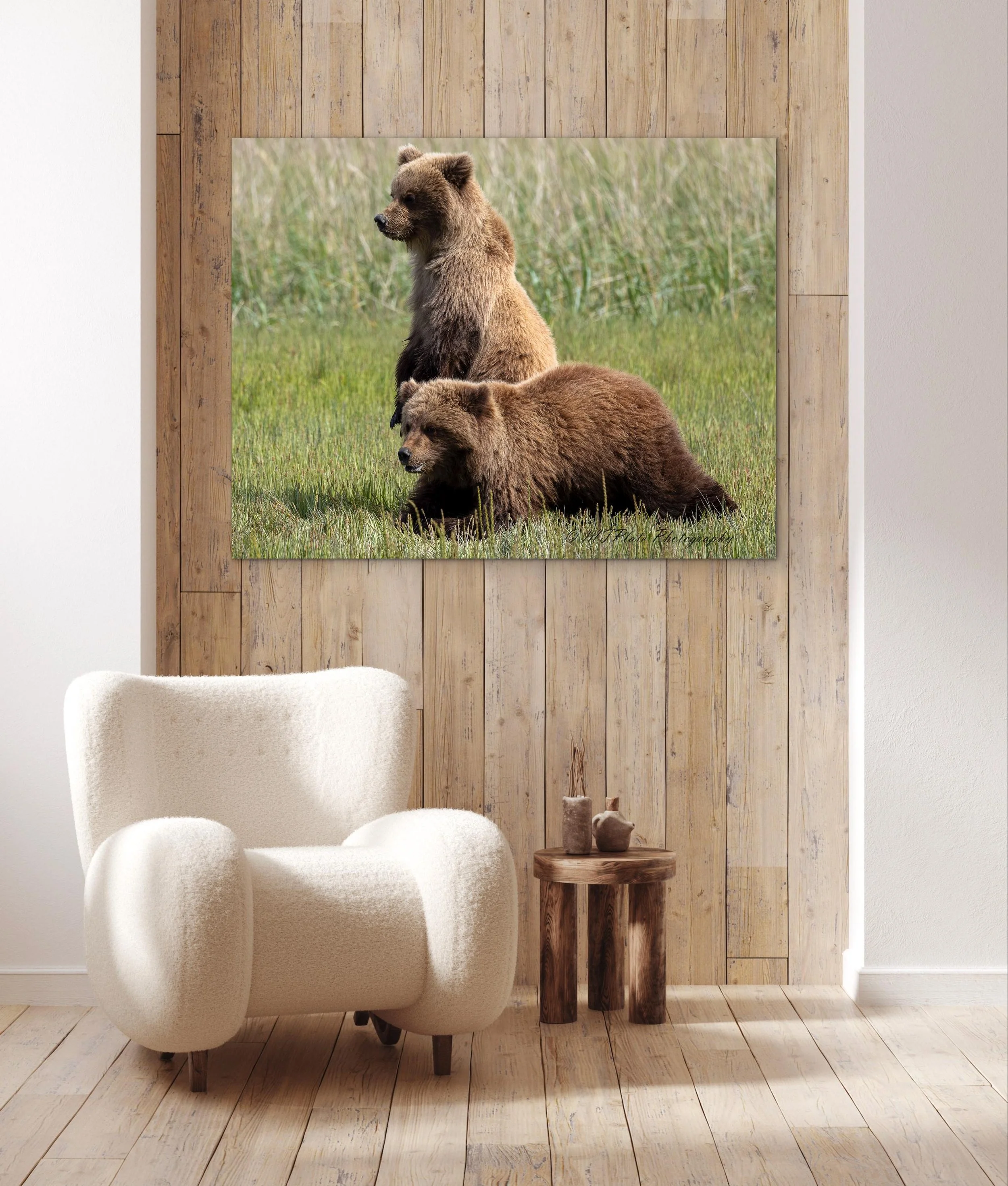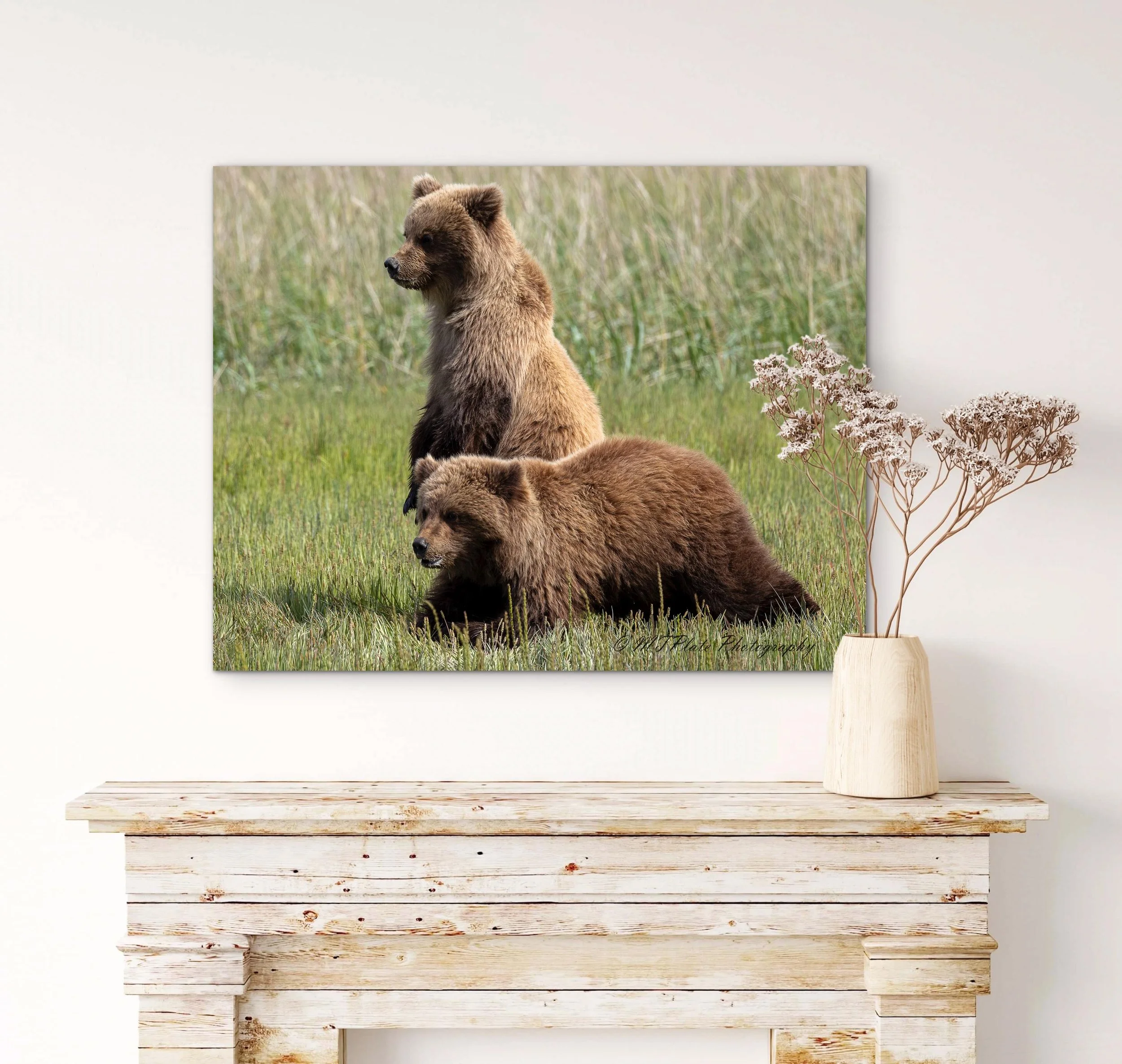 Metal Print - Alaska Bear Cubs “Did you hear that?” playing after a meal
